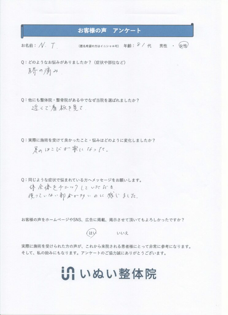 お客様の声 膝の痛み、水が溜まるのことでお悩み